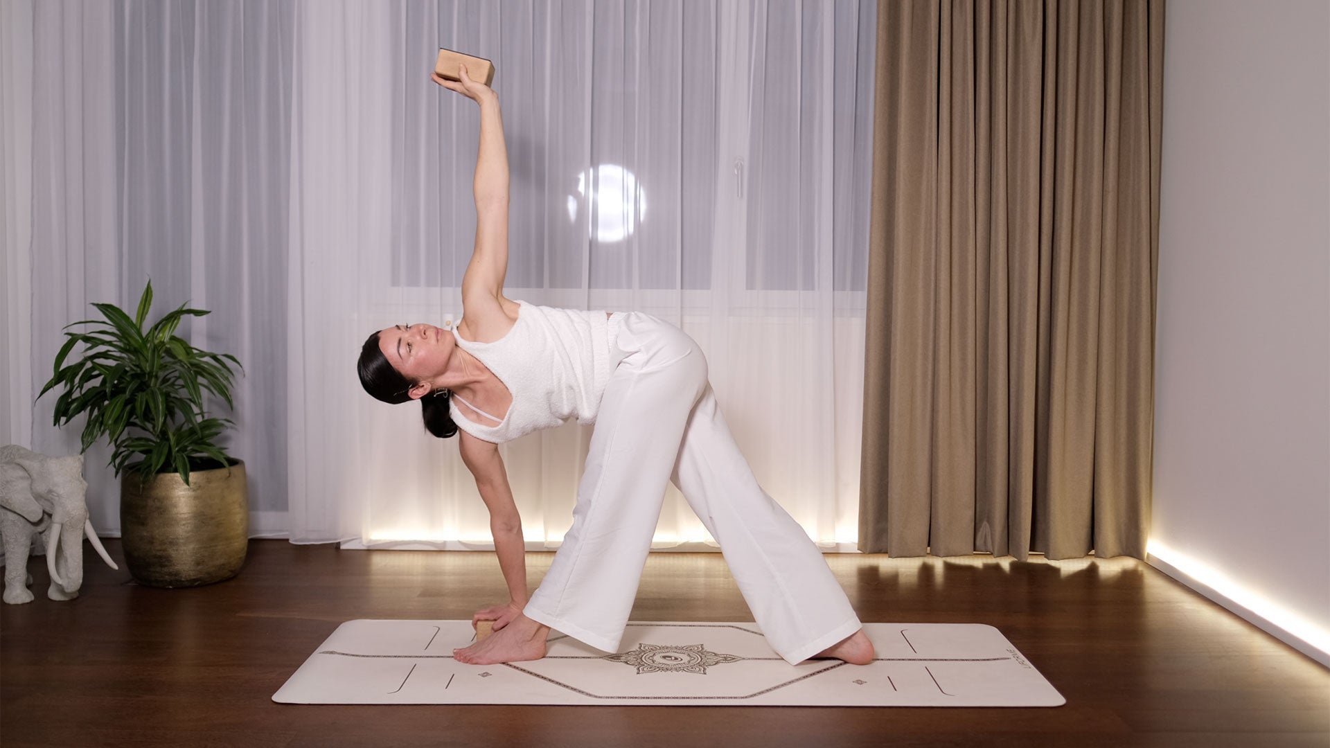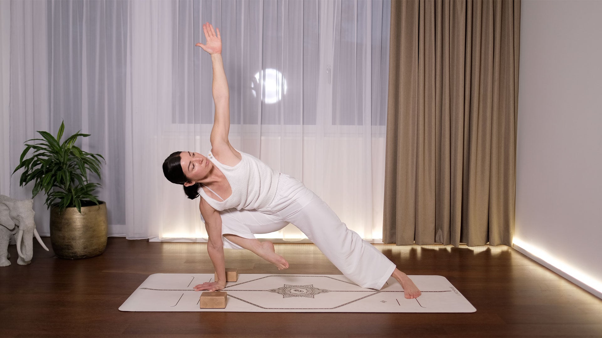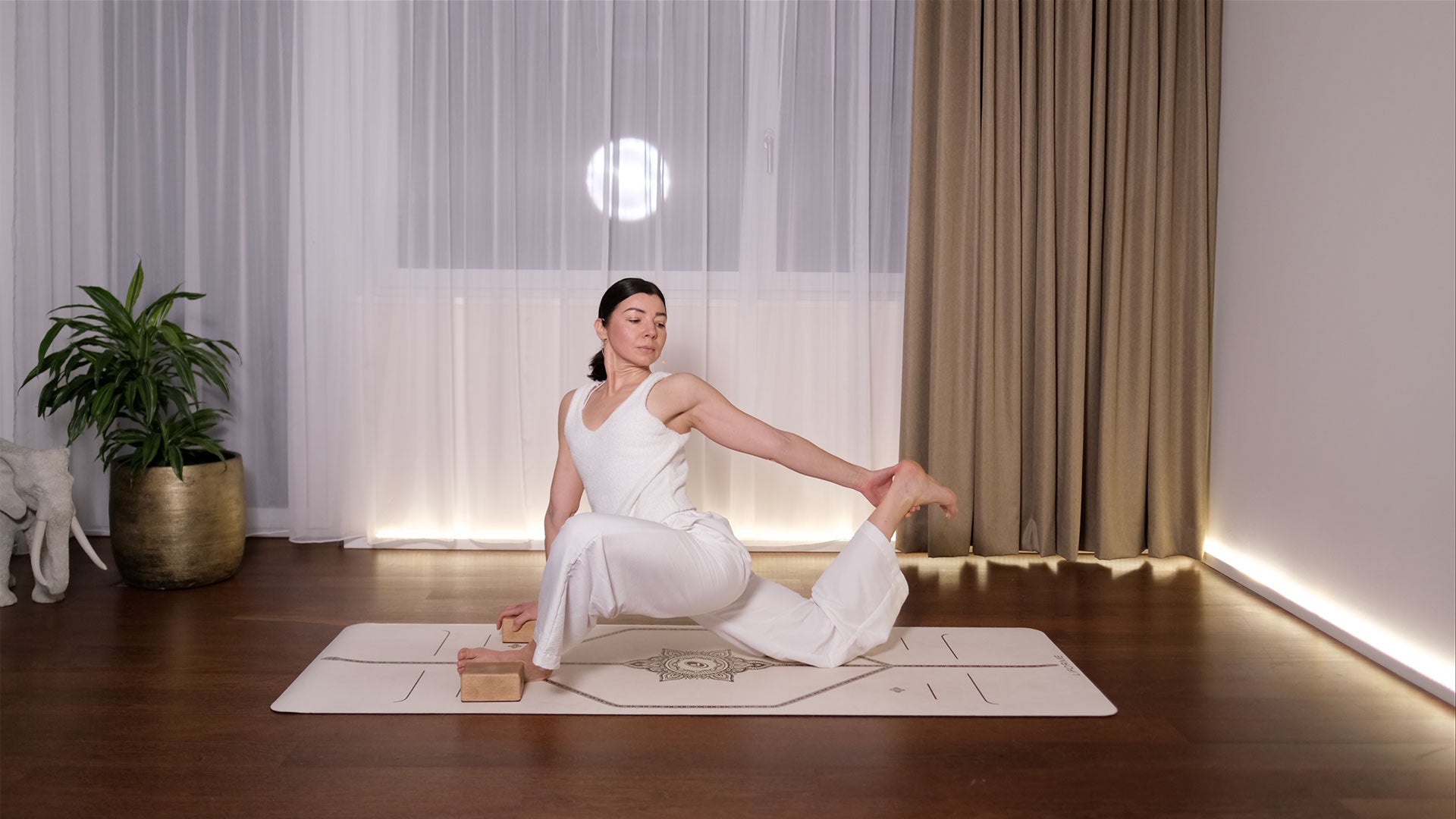 Основа новой практики - хорошо знакомые вам асаны, которые выполняются в статике. Однако подготовка к выполнению итоговой связки будет динамичной и горячей, в стиле виньяса-флоу.